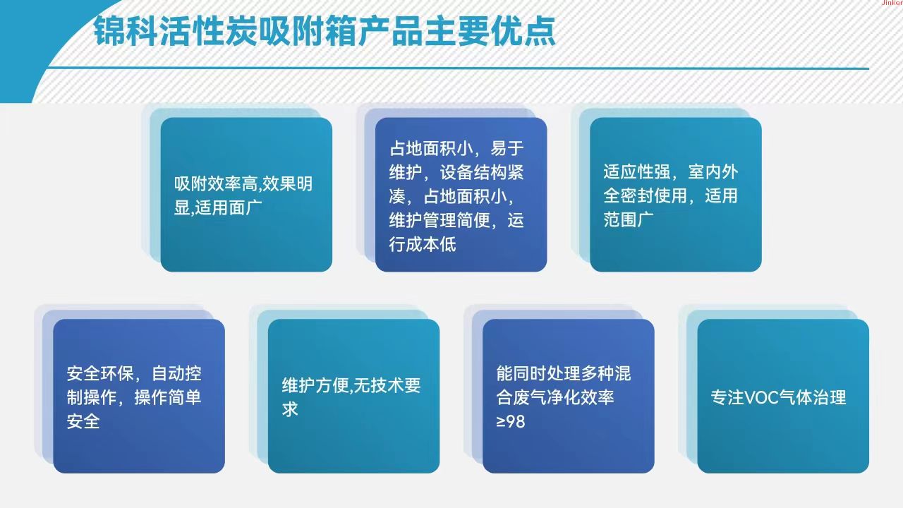 Jinke activated carbon box is particularly suitable for working environments with low concentration, high air volume, or high concentration intermittent exhaust emissions.